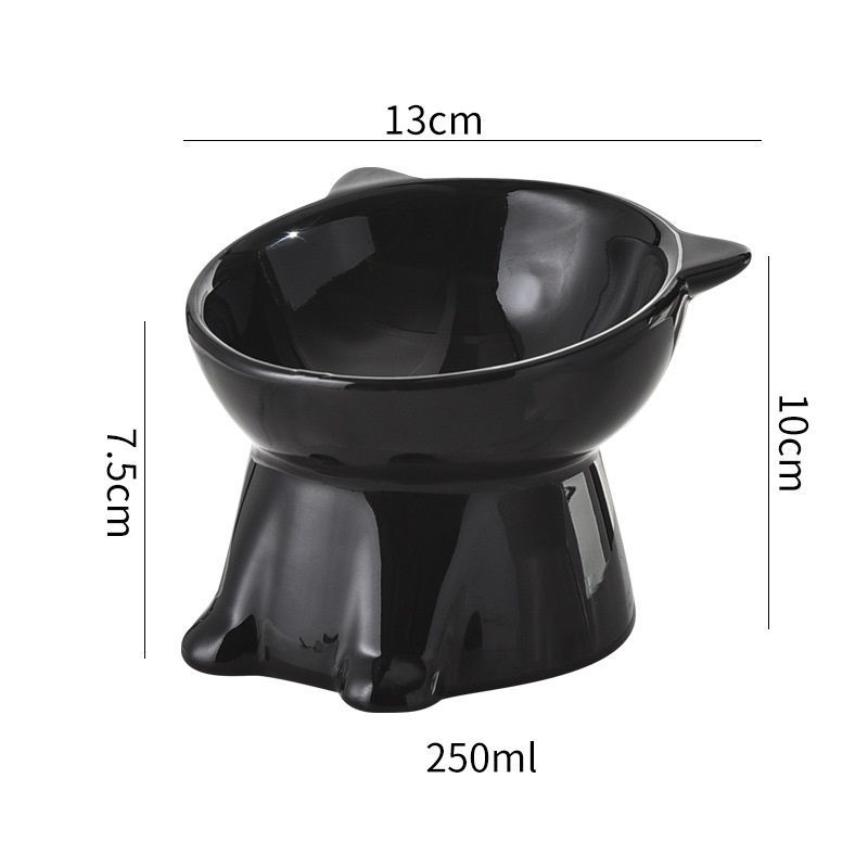 Έχει σχεδιαστεί για να μειώνει την καταπόνηση του αυχένα στις γάτες και να βελτιώνει την πέψη. Το μπολ είναι κεραμικό, το οποίο είναι ένα ασφαλές, μη τοξικό και ανθεκτικό υλικό. Ο κεκλιμένος σχεδιασμός βοηθά στην αποτροπή της διαρροής της τροφής και την διατηρεί στο κέντρο του μπολ, ενώ το υπερυψωμένο ύψος μπορεί επίσης να μειώσει την καταπόνηση της πλάτης.