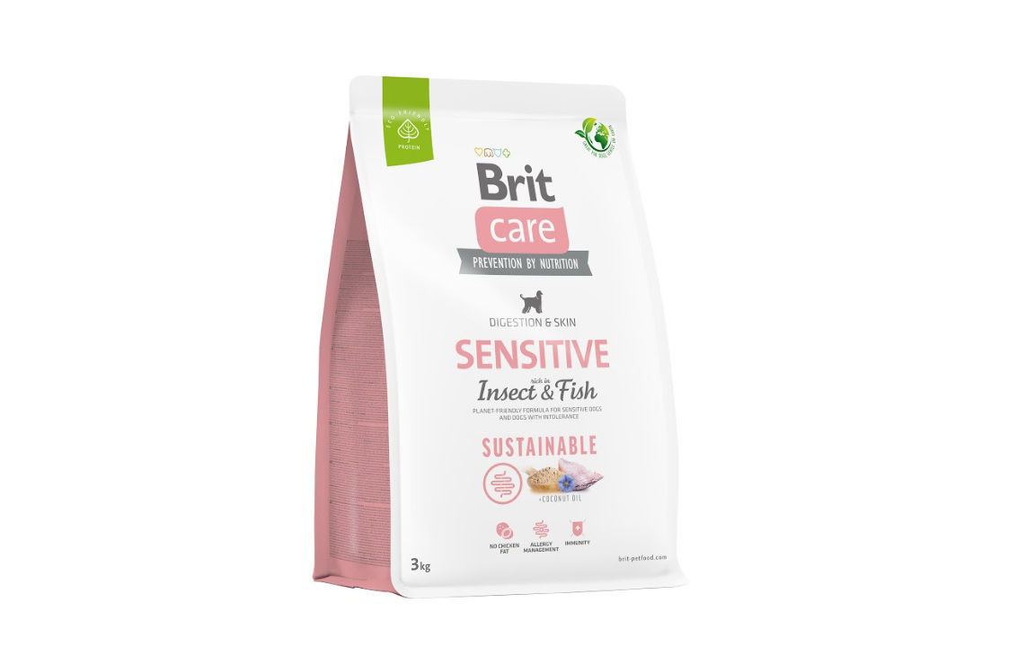 Βρείτε τη Brit Care Dog Sustainable Sensitive για σκύλους που είναι επιρρεπείς σε δερματικά και πεπτικά προβλήματα, διαθέσιμη σε συσκευασίες 1kg, 3kg και 12kg.