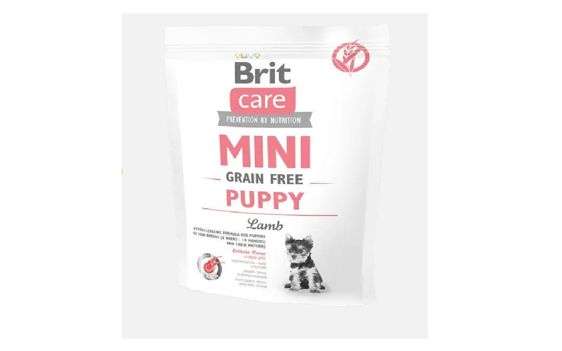 Η Brit Care Mini Grain Free Puppy Lamb είναι μια ολοκληρωμένη υποαλλεργική τροφή για κουτάβια μίνι φυλών, 4 μηνών έως 10 μηνών, η οποία φτιάχνεται χωρίς σιτηρά και έχει ως αποκλειστική πηγή πρωτεϊνών το νωπό κρέας αρνιού.