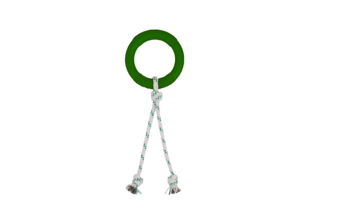 Το Hoop Rope Toy της GREEN SHEEP είναι ο ιδανικός συνδυασμός διασκέδασης, ανθεκτικότητας και οικολογικής συνείδησης για τον τετράποδο φίλο σου.Κατασκευασμένο από 100% φυσικό καουτσούκ και οργανικό βαμβακερό σχοινί, αυτό το παιχνίδι-κρίκος είναι ιδανικό για τράβηγμα, μάσημα και αλληλεπίδραση με τον κηδεμόνα.