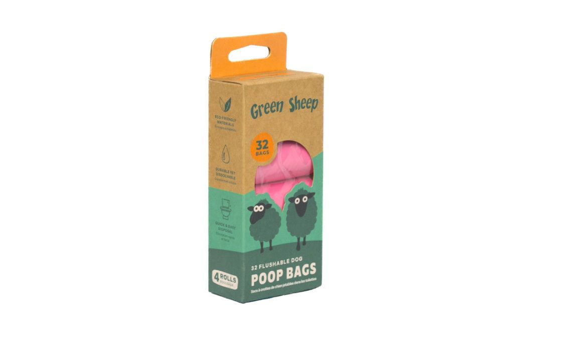 ♻️ Green Sheep Flushable Pink Σακούλες Υγιεινής – 32 Τεμάχια (4x8pcs)