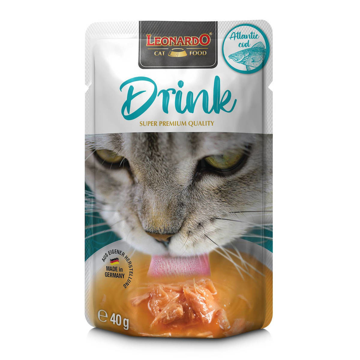 Με γεύση θάλασσας: Η γάτα σας δεν πίνει αρκετά; Το LEONARDO Drink Atlantic cod, με τη λεπτή γεύση ψαριού, την προσκαλεί στο μπολ! Ιδανικό ως συμπλήρωμα ξηράς τροφής, ενισχύει την επιθυμία για ενυδάτωση και προάγει την υγεία και τη ζωτικότητα της γάτας σας. Η επαρκής ενυδάτωση είναι ζωτικής σημασίας για την υποστήριξη της λειτουργίας του ουροποιητικού συστήματος.